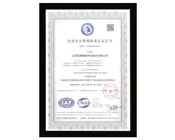 信息安全管理體系認證證書